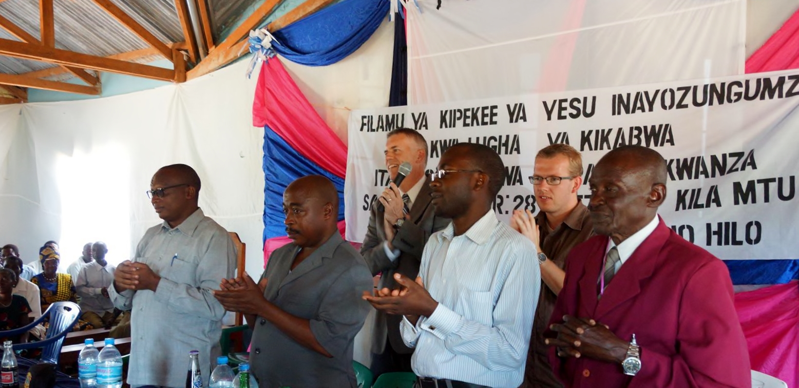 Vorig jaar zijn we in contact gekomen met een organisatie hier in Tanzania die lokale kerken ondersteunt bij hun evangelisatiewerk. Een van de meest gezegende hulpmiddelen om grote groepen mensen te bereiken met de boodschap van het Evangelie is het vertonen van een verfilming van het Lukas-Evangelie. Aangezien we een tijdje geleden dat Evangelie al vertaald hadden, en onze vertalers getraind zijn om dingen in de Kabwa-taal te vertalen, werden we gevraagd om onze medewerking te verlenen. In nauwe samenwerking van de kerkleiders van de gemeenschap is besloten om de film niet slechts in het Kabwa te ondertitelen, maar om het volledig in Kabwa op te nemen. Een enorme klus waarbij meer dan 40 mensen uit de Kabwa-dorpen hebben meegewerkt door hun unieke stem te laten klinken. Toen al het werk afgerond was, werd er met spanning uitgekeken naar de week na Pasen 2014. Want dan zou de film in première gaan. De kleine Kabwa-stam zou de eerste taalgroep in de regio zijn.