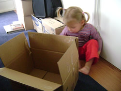 In de gang staan een paar doosjes die meegaan naar Engeland. Ook weer wat studiemateriaal en kinderboeken. Maar ook bijvoorbeeld winterjassen. Andere dingen die meegaan zijn nog volop in gebruik.