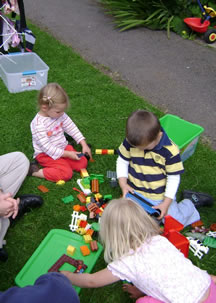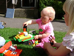 Blijkbaar was de Duplo aantrekkelijk, want algauw kwamen Siiri en Sarra (Fins) erbij om mee te doen.