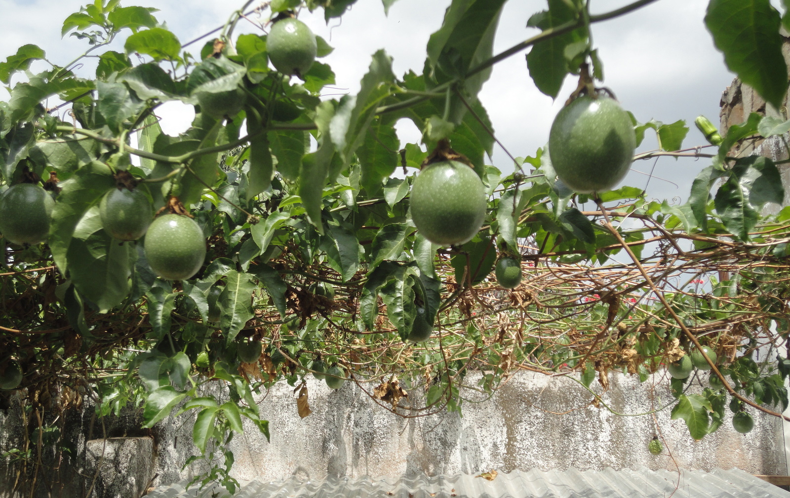 Ook onze passievruchten zijn favoriet. Het duurt even voor ze rijp zijn en je de gele vruchten kunt oprapen, maar dan heb je ook wat. Het is heerlijk om leeg te lepelen, voor in de sap, of – wat wij vaak doen – om het door de zelfgemaakte yoghurt te roeren.