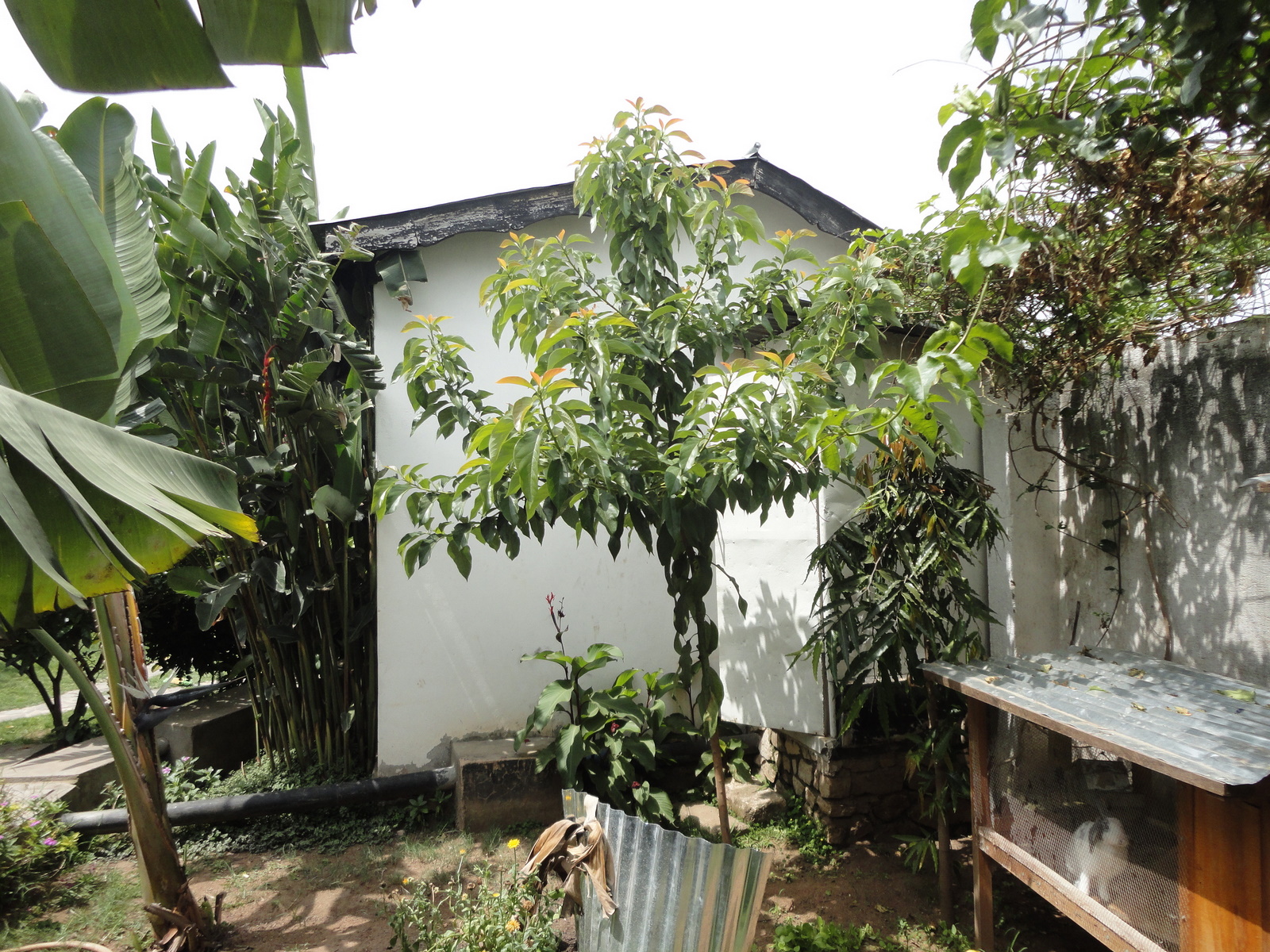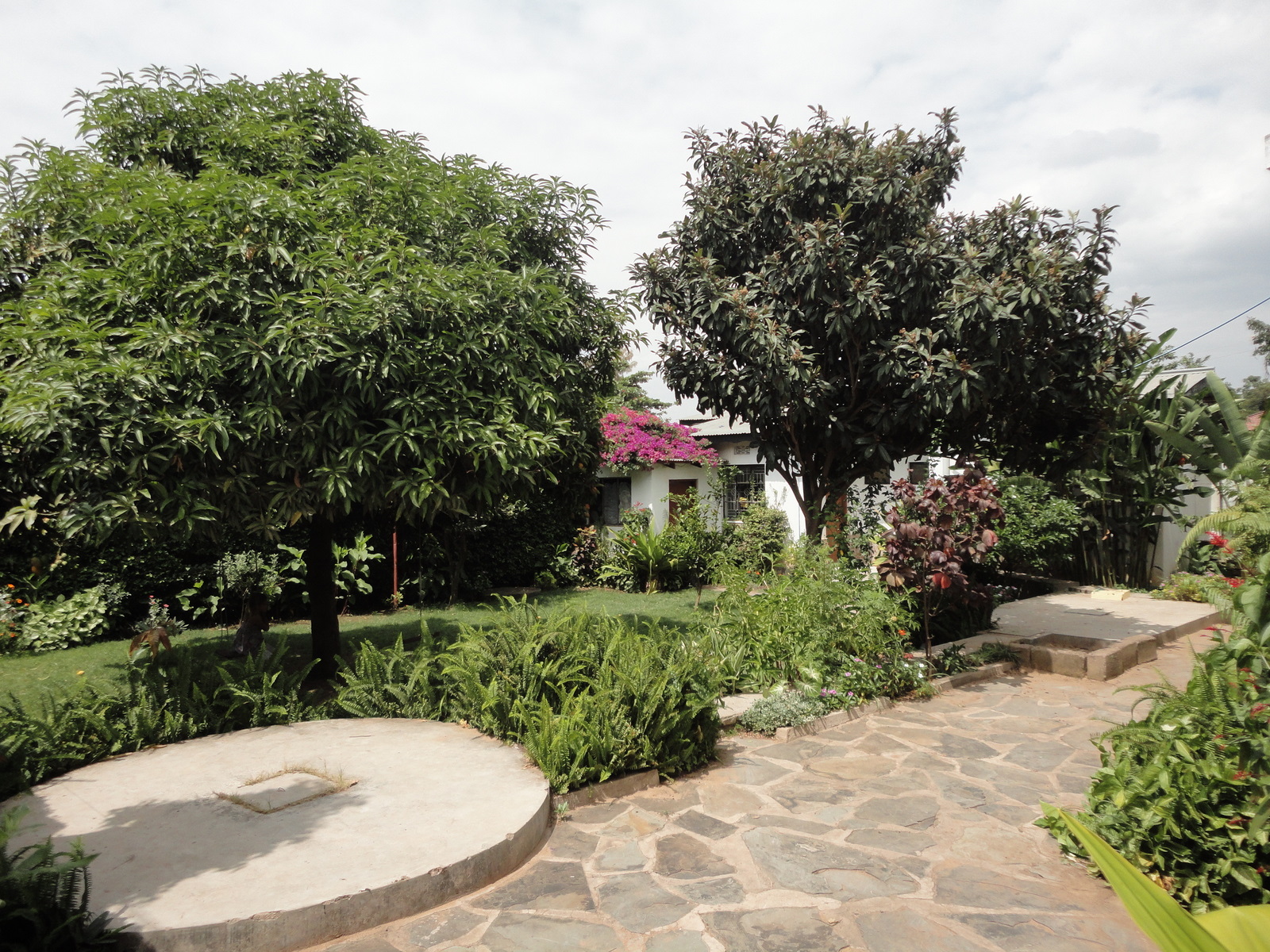 Het is een hele uitdaging om je tuin mooi te houden hier in Tanzania, maar momenteel is het overal groen! We hebben net het regenseizoen achter de rug, en alles groeit en bloeit. Hier onze achtertuin met links de mangoboom.