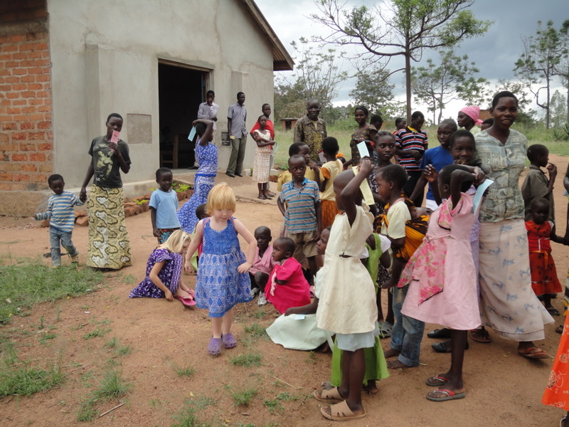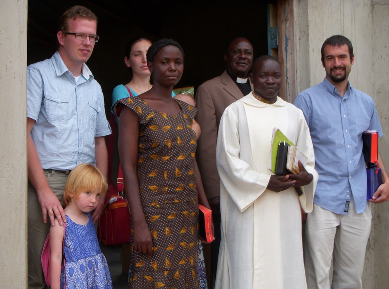 Foto 1: Buiten de Anglikaanse kerk van het Kabwa-dorpje Mmazami.