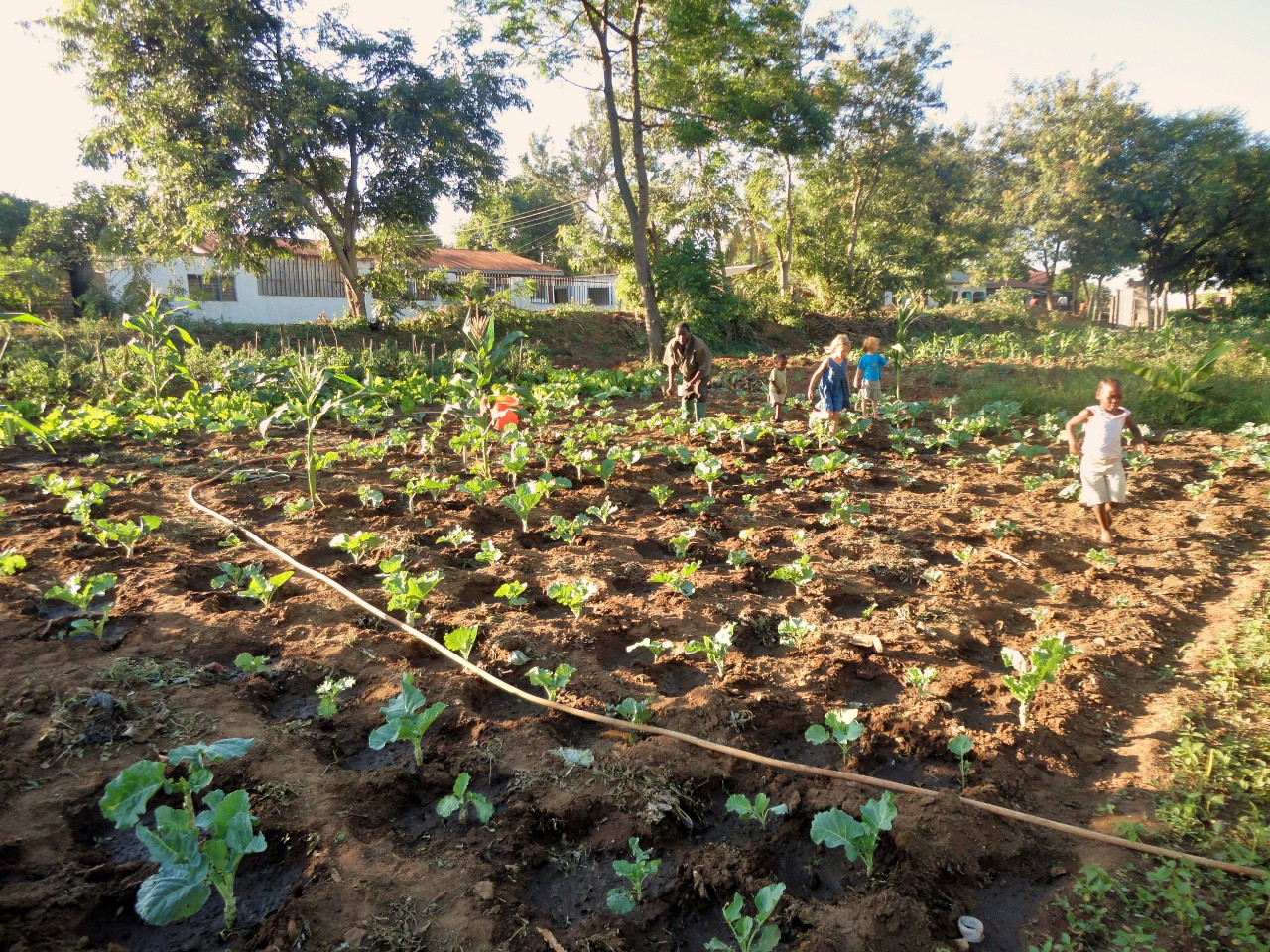 We zijn nu ruim twee maanden verder, en ik moet zeggen dat we er enthousiast over zijn! Jonas, onze tuinman is hard aan de slag elke week, en zorgt ervoor dat alle groente de beste behandeling krijgt en voldoende water. Momenteel groeien er tomaten, Chinese kool, paksoi, witte kool, wortels, spinazie, sla, pompoenen, en bananen.