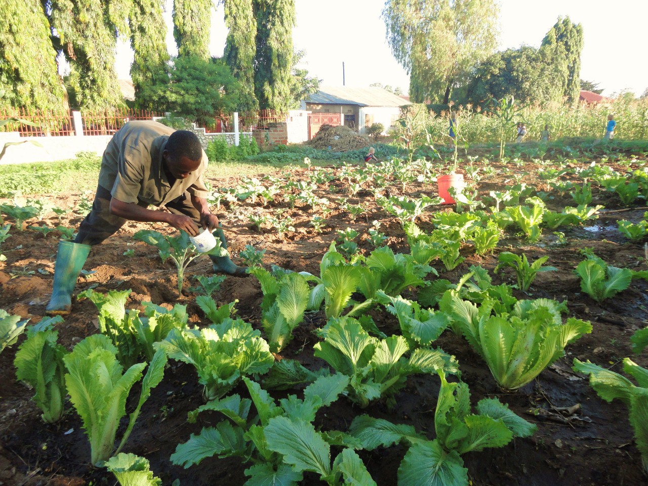 Als de kool of de spinazie bijna klaar is om te oogsten, komen er dagelijks mensen langs om een paar vierkante meter te mogen plukken. Daar betalen ze Jonas dan voor, en verkopen het zelf op de markt of langs de weg. Momenteel eten niet alleen wij verse groente, maar ook onze buren en onze vrienden die ons in en rond het huis helpen. En Jonas’ gezin krijgt nu maandelijks een mooi extraatje door de opbrengst van de oogst.