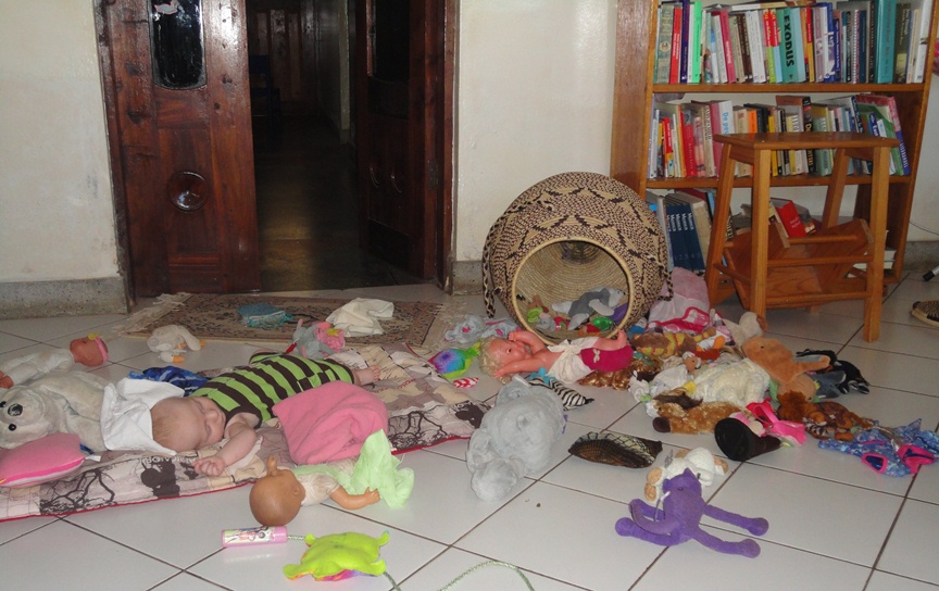 “Hebben de meiden nu alweer de mand met knuffels omgegooid? Ik zal alles wel weer even bij elkaar vegen…. eh… Wacht even…”